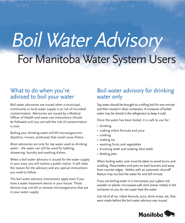For More Information about Boil Water Advisories in Manitoba for Water System Users Click Here
