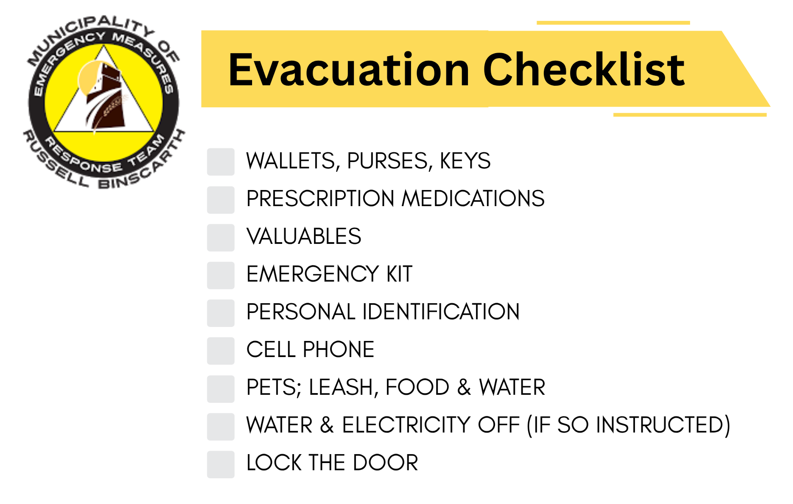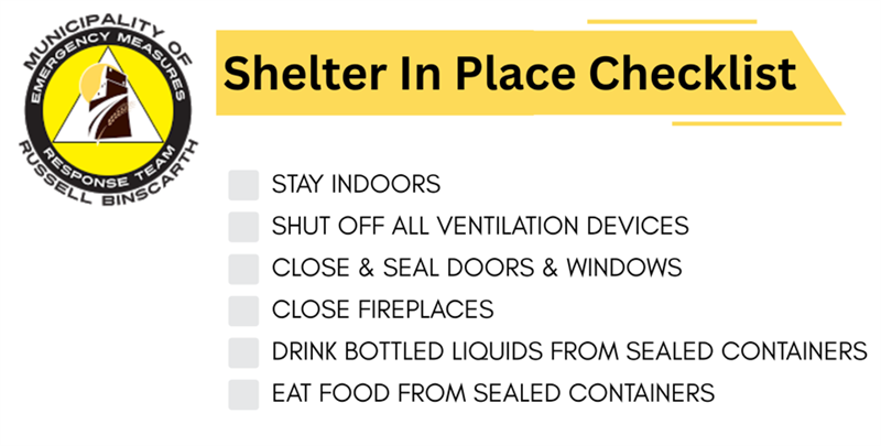In the event of a hazardous materials spill, a fire or other event, you may be required to evacuate your residence. Refer to the Evacuation Checklist on this page and see http://www.getprepared.gc.ca/index-eng.aspx .If you are told to ‘shelter-in-place’ follow the instructions on this page.