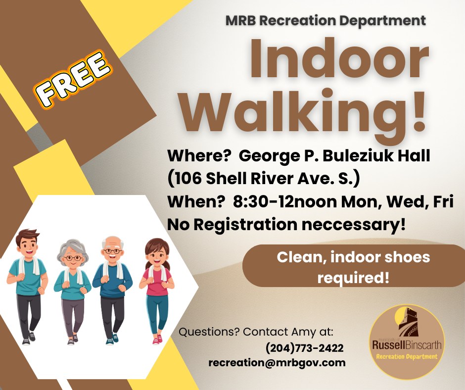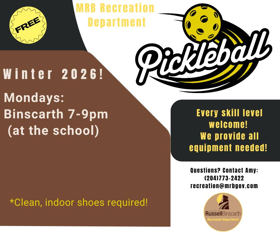 Below are the Events and Programs being offered. If you'd like to sign up for any program, event or class, or would like more information, please contact the Recreation Director, Amy Tweet, at (204)-773-2422 or recreation@mrbgov.com.